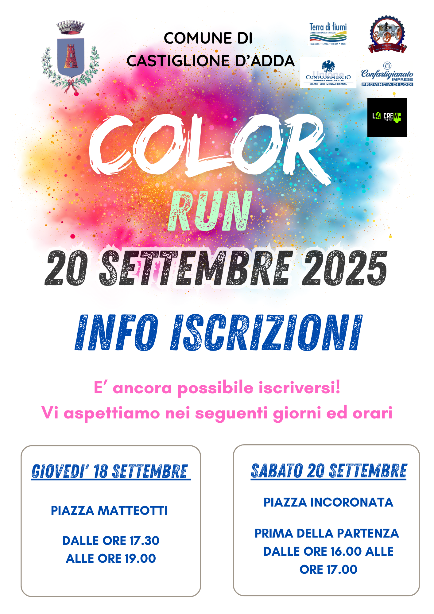 È ancora possibile iscriversi alla COLOR RUN in programma il prossimo 20 settembre: