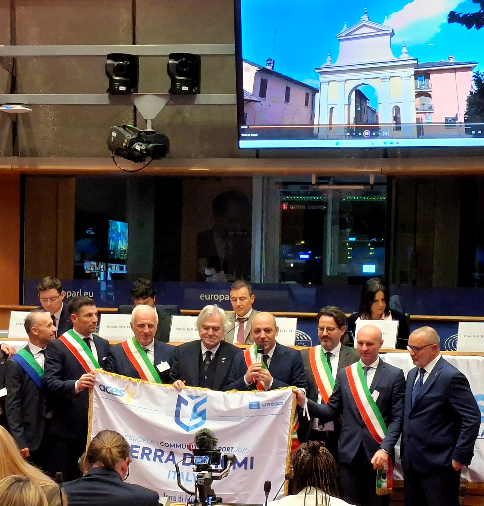 Il giorno 11 dicembre 2025 il Sindaco, unitamente ad alcuni Sindaci della Comunità Europea dello Sport, ha avuto l'onore di rappresentare il Comune di Castiglione d'Adda al Parlamento Europeo in occasione della consegna da parte di ACES del titolo alla Comunità "Terra di Fiumi".