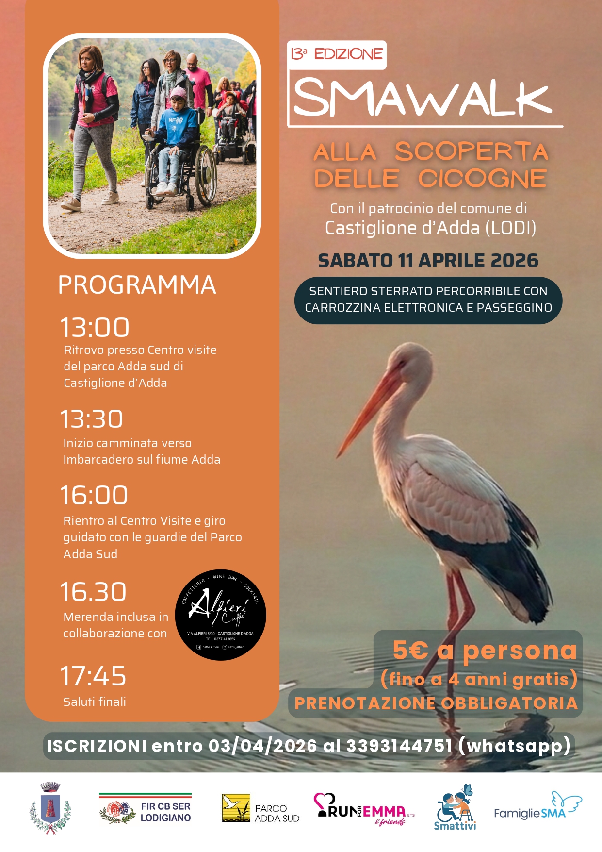 L'Associazione #RunforEmma & Friend ETS, con il Patrocinio del Comune di Castiglione d'Adda, propone una passeggiata non competitiva presso il Centro Visite del Parco Adda Sud e la ciclabile Rosa Canina.